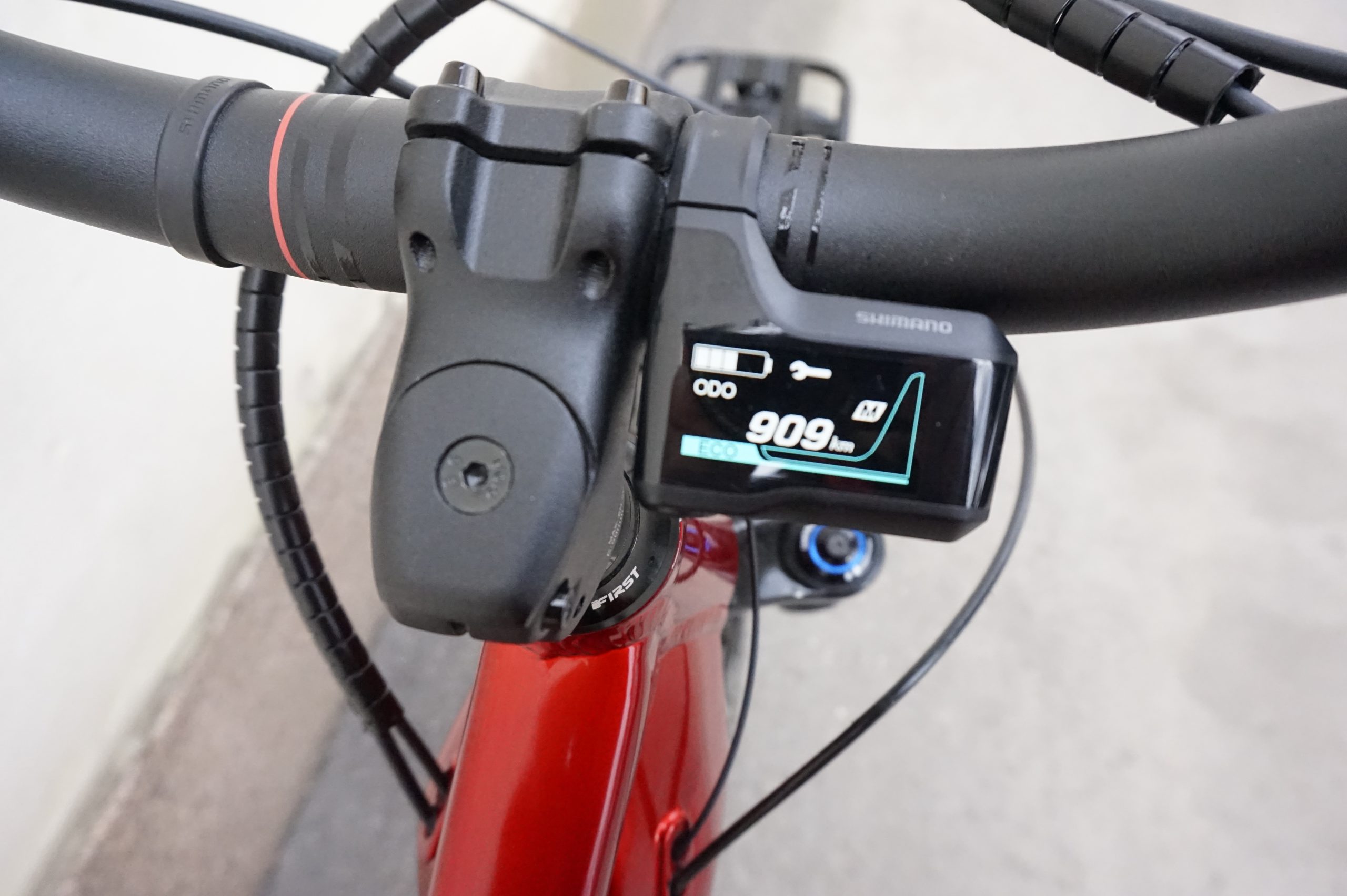 Shimano EP8 – moottori tarjoaa mahtavat voimavarat avustukseen ja 630Wh akusta riittää virtaa jopa 100km ajoihin.